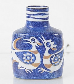 Ev fin vas i stengods från Aluminia (Royal Copenhagen) med höjden 13 cm. Utrop 200 kr (23 feb).