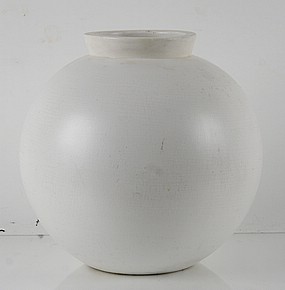 En vit ren urna av Wilhelm Kåge för Gustavsberg. Den är 30 cm hög och utropet är 2000 kr (24 feb).