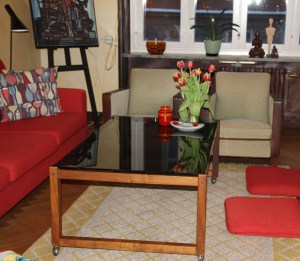 Hahaha… Jag har ett tv-rumsbord med klothjul som jag köpte just för att vi alltid skjuter runt vårt bord i tv-rummet! =)))) Döpraktiskt i en familj där vi ofta fikar och äter frukost framför tvn….. Galna inredningsidéer är roligt! Kul att inte alltid vara som alla andra och efter mallen….