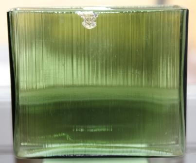 En fyrkantig glas vas som alla vet var den kommer ifrån utom jag. Kan någon hjälpa mig? Snygg är detn ialla fall!