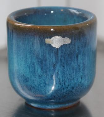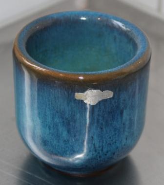 Kruka/skål från Gabriel. Märkt med ett G under och den är 9 cm hög. Den typen av märkning användes vad jag förstår mellan 1948 och 1958. Jag föll för den 50-tals blåa färgen.