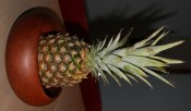Min man fyllde nyligen år och hade kalas igår. Han fick många fina presenter, främst lite nya fräscha kläder. Men han fick också några retropresenter. Från mina föräldrar fick han bla en stor retroskål i teak. Den är 26 cm i diameter och 9 cm hög. Ananasen är gigantisk!