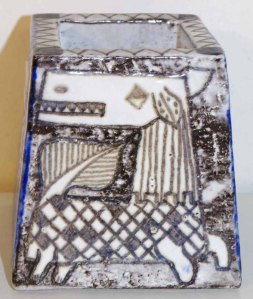 På bilden brevid en 11 cm hög vas av Mari Simmulson för Upsala-Ekeby. Nr 58 av 100 ex. Inte heller så illa! 😉