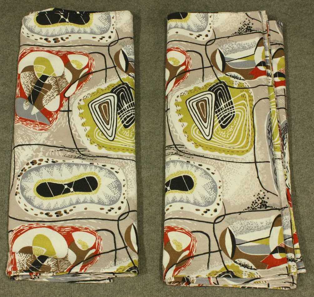 Två gardinlängder i mycket trivsamt tyg. 1940/50-tal. Utrop 500 kr (30 mars).