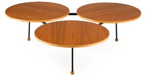 Till sist ett soffbord av Greta Magnusson Grossman för möbelfirman Glenn of California formgivet ca 1952. Det är i bangkokteak med svartlackerat stålunderrede och klotfötter i teak. Höjd 38 cm och det är renoverat. Häftigt. Läs mer här. Utropet ligger på 60-80 tkr. Tämligen oöverkomligt!