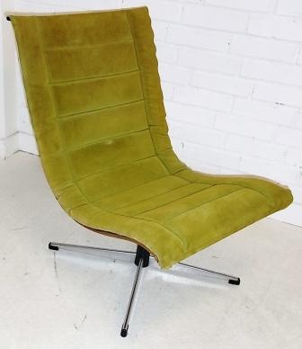 Slutligen en tidstypisk fåtölj från 70-talet. Kan vara snygg på rätt ställe! Utrop 600 kr.