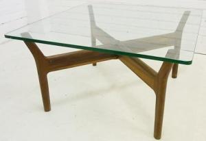 Ett soffbord designat 1956 av Alf Svensson för Bra Bohag. Det är 90×90 cm och höjden 50 cm. Snyggt och prisvärt om man kan tänka sig glasbord. Utrop 1000 kr.