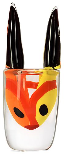 En tjur av Erik Höglund från Strömbergshyttan från 1997. Den är ca 20 cm hög. Utrop 4000-5000 kr. Färgerna är ganska häftiga! Jag gillar den här!