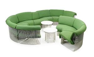 Nedan en soffgrupp Pantonova av Verner Panton som passar till fotot! Det är en sektionssoffa (11 fåtöljer) och 2 bord. Den formgavs 1971 och är tillverkad av Fritz Hansen. Utrop 10-12 tkr. Möjligen något utrymmeskrävande!