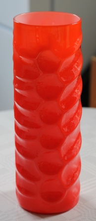 Vad hittade jag då? Lite färgstarkt glas. En vas märkt Made in Sweden. Någon kanske vet var den är tillverkad. Jag glömde att fråga i butiken. Den är 26 cm hög och insidan är vit. Färgen gör mig verkligen lycklig!