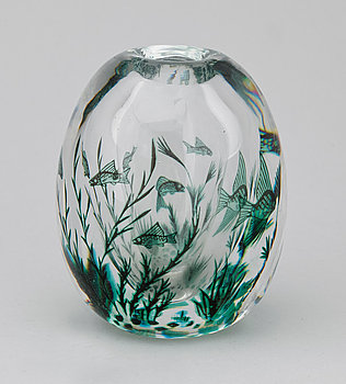 En fiskgraal av Edward Hald. Snygg. Högsta bud just nu är 1100 kr. Båda glasföremålen ropas ut på Bukowskis Market imorgon.