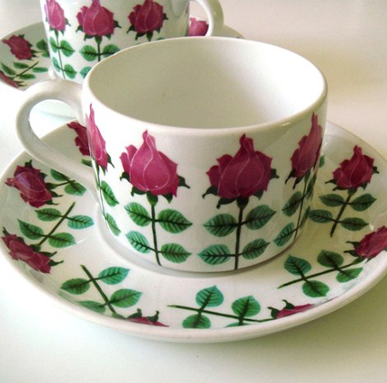 Så fin serie! Jag har ju mina fyra fat men inte en enda kopp… Såg en säljare på loppis som hade en ensam kopp med ett pyttenagg men den ville han inte sälja(!). Däremot hade han en kopp med fat som han kunde tänka sig att sälja för 650kr, inget loppispris direkt.