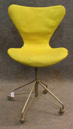 Vidare en Sjuan skrivbordsstol av Arne Jacobsen. Den är dock inte i bästa skick. Jag skulle gärna ha den ändå. Den går säkert att få stil på. Högsta bud 1650 kr (5 aug).