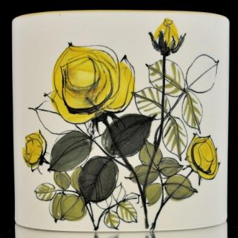 En vas, också Arabia, av Hilkka-Liisa Ahola. Den är 15 cm hög. Ingen har lagt bud än. Rosen är ju läckert tecknad.