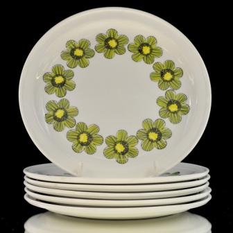 Här är några grejer från Arabia. Först 6 tallrikar av Esteri Tomula i serien Primavera som producerades 1970-74. Högsta bud just nu 100 kr.