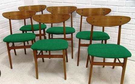 Sex stolar i teak (tror jag) med utropet 1200 kr. 200 kr st är väl billigt?! Absolut prisvärt.