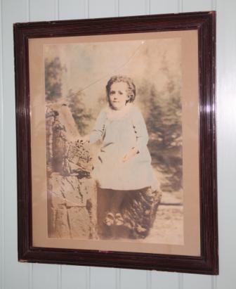 Foto är trendigt har jag snappat upp 🙂 Det har jag tagit fasta på och hängt upp ett gammalt loppisfynd på landet. Det är ett ganska stort foto (yttermått 60×70 cm) och färglagt även om färgerna bleknat. Man funderar lite på hur det kommer sig att föräldrarna gjorde ett så stort foto av sitt barn. Jag tror inte att det var så vanligt då det begav sig.
