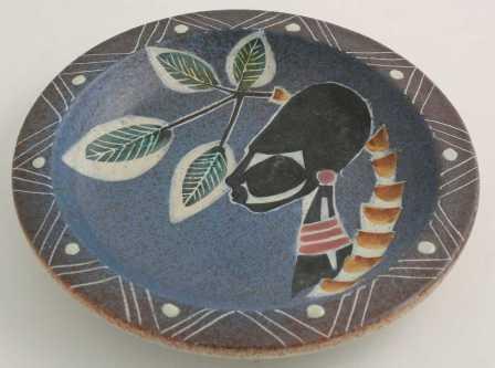 Här är en skål med ganska kul motiv. Den är från Tilgmans Keramik. Inte jättekaraktäristisk för dem. Diametern är 21 cm. Högsta bud är 60 kr och auktionen avslutas 22 september.