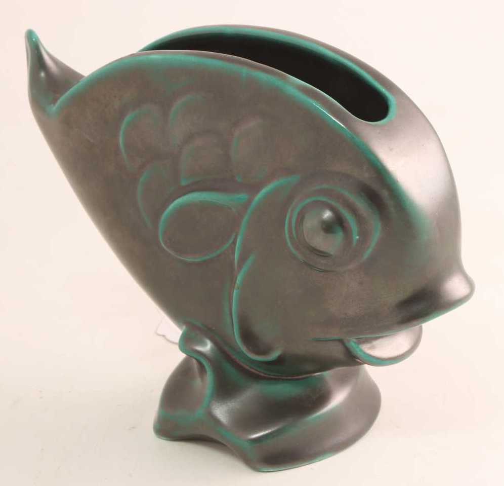 Vilket gulligt servettställ! Inte så användbart kanske. Man kanske kan ha fisken i badrummet med Kleenex i. Den är tillverkad på Upsala-Ekeby. Buden är uppe i 175 kr och auktionen avlutas 21 september.
