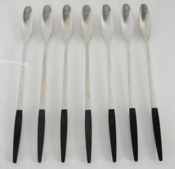 Väldigt snygga och redan många budgivare! Senaste budgivare är beredd att betala 275 kr (7 okt). Besticken är från Gense. Katalogen är också här sparsmakad med fler uppgifter. Jag vet inte om de här är gamla eller nya men de är ur serien Focus de Luxe av Folke Arström och kallas i alla fall numera för lattesked. Ett 4-pack kostar i nytillverkning 500 kr.