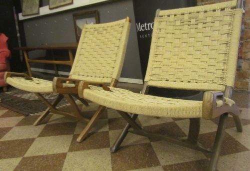 De här teakfåtöljerna med snörmakerier skulle jag också kunna tänka mig. Vi behöver verkligen två fåtöljer i den här stilen. Men här ser ju inte snörmakerierna ut att vara i toppform så jag avstår. Högsta bud just nu är 2500 kr.