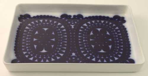 Ett uppläggningsfat i serien Blå Husar av Stig Lindberg för Gustavsberg. Mycket snygg. Går att ha som bricka (31×22 cm). Nån har bjudit 225 kr (22 okt).