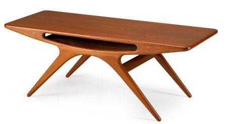 Ett danskt soffbord i teak i skön form. Det är förstås av Johannes Andersen för CFC Silkeborg. Utrop 6-8 tkr.