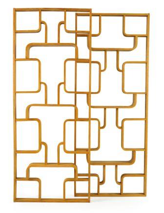 2 rumsavdelare i formpressat böjträ. Hur bra som helst. Från Firma Thon i Tjeckoslovakien 1960-70tal. De känns verkligen unika och dekorativa. Höjden är dock 270 cm så de går inte in i vilken standardlägenhet som helst. Utrop 12-15 tkr.