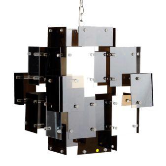 En lampa med rökfärgade och spegelplexiplattor från 70/80-talet. Utrop 4-5000 kr.