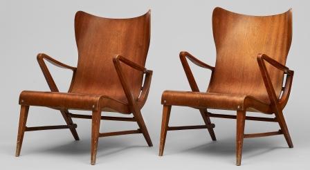 Fina fåtöljer i teak av Axel Larsson (1898-1975). Utrop 6-8 tkr.