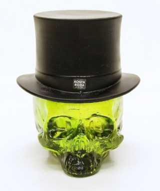 Lite modernare saker. Nutida till och med. En 13 cm hög glasskulptur av Ludvig Löfgren från Kosta Boda. Titeln på verket är Still Life Absinth. Utrop 2000 kr.
