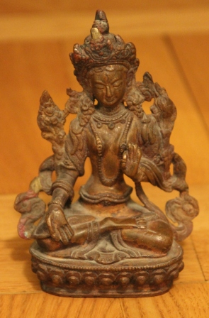 Själv slog jag till på en Buddha som marknadsfördes som ”antik” i en turistshop. Dock fanns det lite för många ex för att det skulle kännas helt trovärdigt 🙂 Men den är fin! Den får ingå i samlingen som jag köpte i Indien långt innan det blev inne att ha Buddhafigurer hemma. Jag blev så betagen i Indien att hela hemmet blev indiskinspirerat långt innan det blev hypat. Jag sydde sofföverdrag av sarityg och målade möbler i starka färger med avskavd look. Här är de andra figurerna: