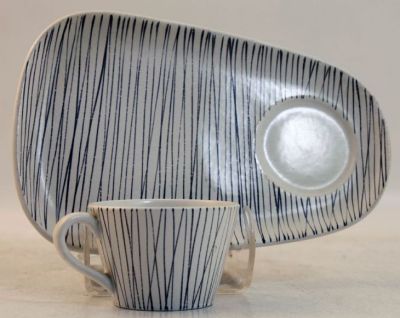 TV-koppen är från Gustavsberg och Stig Lindberg. Det är en fajansmålad version av TV-koppen ur Colorado. På Tradera brukar de hamna på tusenlappen ungefär.