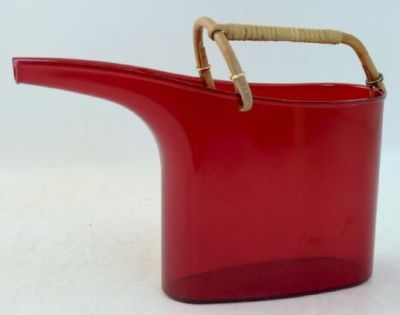 Gustavsberg tillverkade plast också. Här är en vattenkanna av Stig. Fontana som tillverkades 1967-72. Högsta bud 950 kr just nu. Snyggaste rottinghandtaget!