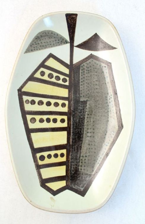 Där finns också detta dekorativa skålfat av Carl-Harry Stålhane för Rörstrand. 37 cm långt. Budet är just nu 250 kr.