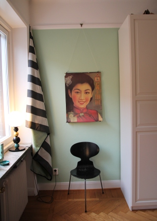 Har en annan ”asiatisk” affisch i sovrummet. Från Ernst Billgrens utställning på Liljevalchs år 2000.