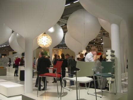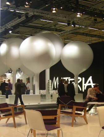 Bara själva montrarna är påkostade och kul att se! Nedan en bild på Muutos monter.Materias monter med sina stora vita ballongträd var häftig.