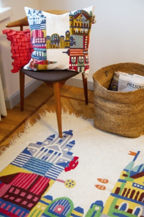 Lotta Nieminen har designat en schysst kudde och matta för företaget Tikau i samband med detta. De är handbroderade och heter H Is For Helsinki. Kudden kostar 95 euro. Mattan har inte börjat säljas än.