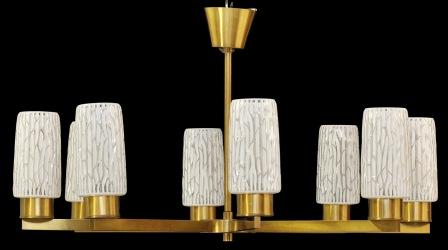 Det är ju trendigt med guld i inredningen och det passar ju denna familj bra. En taklampa i mässing (inga bud lagda) är inte så tokigt.