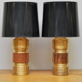 Två bordslampor i keramik. Guld med kopparrand. Sjukt trendigt! Från Bergboms. (450 kr).