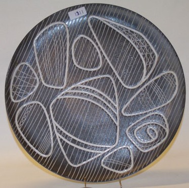 Till höger är ett fat från Upsala-Ekeby i design av Ingrid Atterberg. Vinga kallas det. Utrop 300 kr. Fast fat har man ju en del…..
