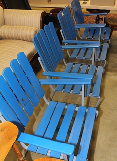 Fyra trädgårdsstolar från 60-talet. Användbara (snart) och snygga. (400 kr).