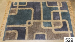Väldigt snygg ryamatta, dock lite smutsig. Ca 1 x 1,5 m. Den är formgiven av Sigvard Bernadotte. (400 kr). Bäst på hela auktionen!