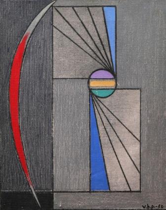 Vilhelm Bjerke-Petersen levde 1909 – 57 och var en dansk målare och keramiker. Han studerade i Norge 1927 -29 och därefter under Paul Klee och Wassily Kandinsky på Bauhaus i Dessau 1930-31. Han var en surrealistisk och abstrakt målare och agiterade för stilen i flera publikationer. Han flyttade till Sverige 1944.