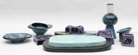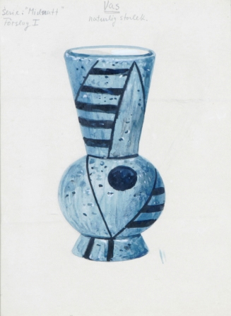 På den lite otydliga bilden ser ni bl a saker ur serierna Abstrakta och Facett för Rörstrand. Utropet är 1200-1500 kr. Bjerke-Petersen var verksam vid Rörstrand 1951-52 med en produktiom av unikt konstgods, främst i chamotte, samt de två ovan nämnda serierna i flintgods. Hans stil är väldigt geometrisk vilket tilltalar mig.