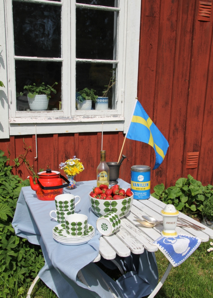 Har äntligen fått ut trädgårdsmöblerna. Mera sol skriker hela min kropp. Passade på att duka upp ett sommarbord med loppisfynd, arvegods och lite annat som en hyllning till denna härliga årstid! Ni som följt bloggen känner säkert igen fler av sakerna. Klicka på bilden så blir den lite större.