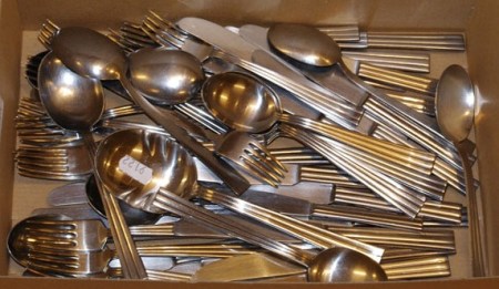 58 delar av den kända bestickserien Thebe av Folke Arström för Gense. Det är bara att chansa. Ett utrop på 500 kr blir mindre än 10 kr per del. Vill ni se vilka delar som finns i serien så titta här.
