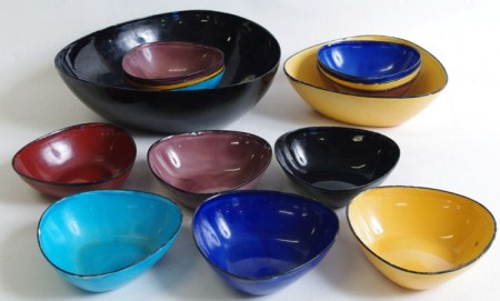 Ett gäng emaljskålar från Kockums. Närmare bestämt 13 st. Vissa skador. (300 kr)