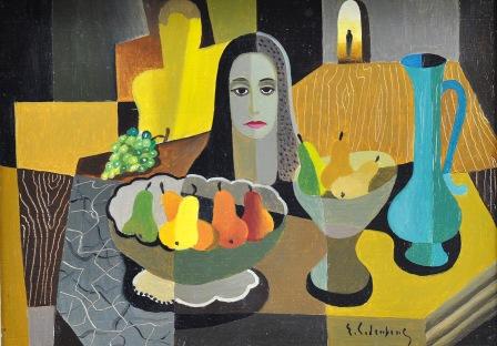 En färgstark olja av Eric Cederberg (1897-1984) som är daterad 1948. Titeln är Inled oss icke i frestelse. Den är inte stor 16×22 cm. Då är inte ramens mått inräknad. Man räknar med 1000 kr men ingen har lagt bud.
