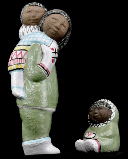 Två eskimåfiguriner av Mari Simmulson igen. För Upsala-Ekeby. Särskilt den lilla sittande är ju jättegullig. Figurinerna tillverkades 1957-1968. Högsta bud just nu 300 kr.